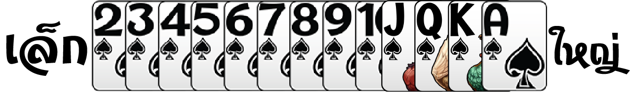 การเรียงไพ่ ลำดับการเรียงไพ่ 2 <3 < 4 < 5 < 6 < 7 < 8 < 9 < 10 < J < Q < K < A คือ A เล็กที่สุด และ 9 ใหญ่ที่สุด