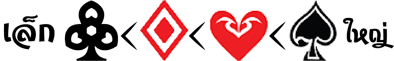 การเรียงดอก ดอก ของไพ่โดย เรียงลำดับจากเล็กไปใหญ่ คือ ดอกจิก ♣ < ข้าวหลามตัด ♦ < โพธิ์แดง ♥ <โพธิ์ดำ ♠