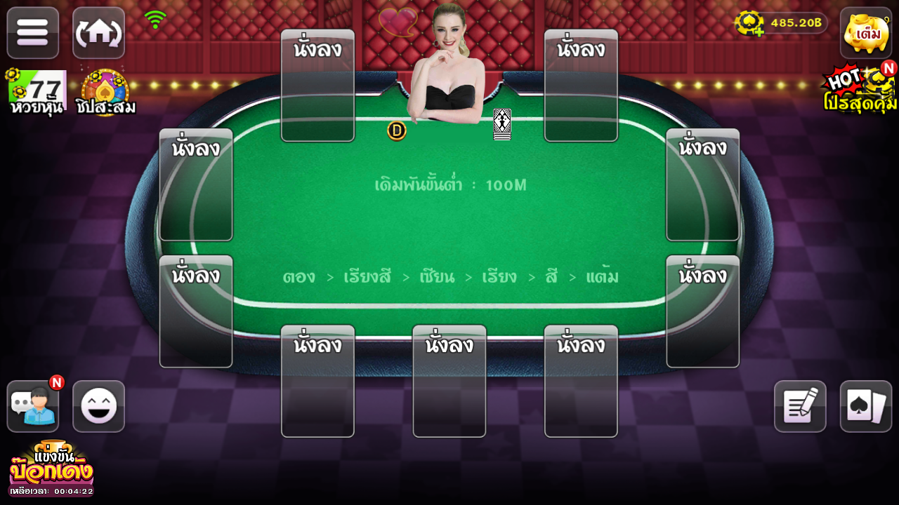 3. เมื่อเลือกชิปในการเดิมพันแล้ว จะเข้าสู่ห้องโดยอัตโนมัติ กดที่ นั่งลง เพื่อร่วมเล่น