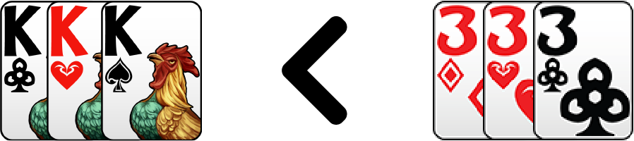 เช่น K♦ K♥ K♠ < 3♣ 3♦ 3♥
